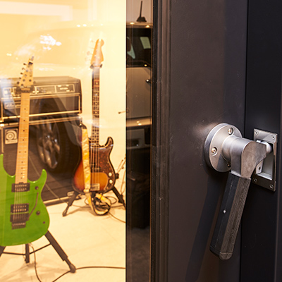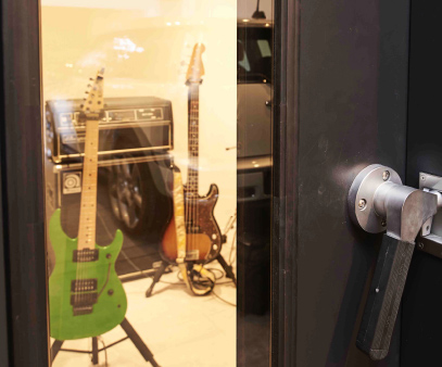 瀬脇氏は防音室の施工業以外に舞台やライブ会場の音響エンジニアという職を持つ、二つのスペシャリストでもある。そこが、他の防音室との違いである。エレキギターの音まで遮断する防音室付き賃貸物件は珍しい。ぜひ、この二人が作る防音室をご体験ください。